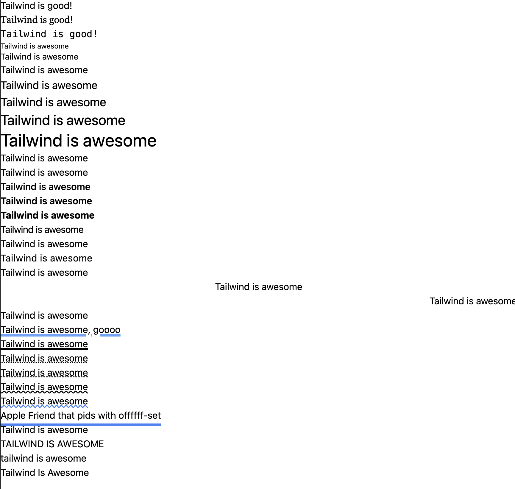 <div class="underline decoration-wavy">Tailwind is awesome</div>