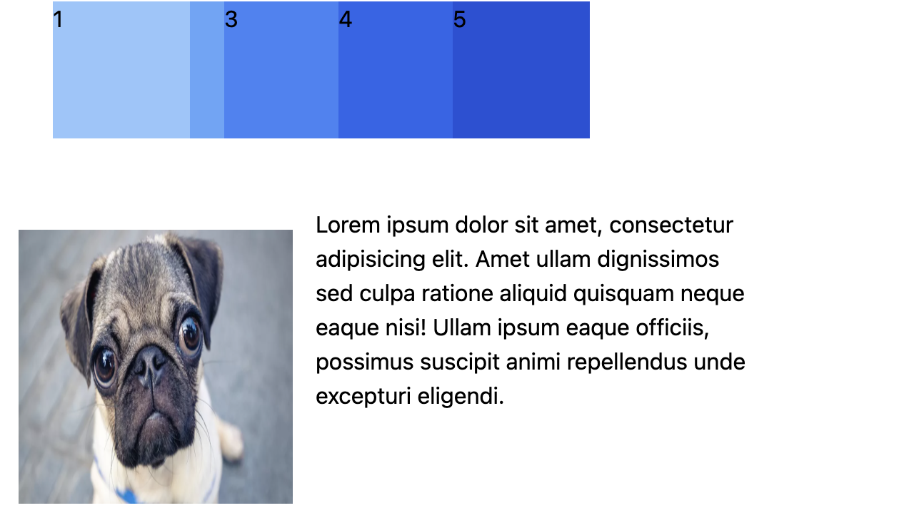 <div class="absolute left-80 w-24 h-24 bg-blue-700 z-30">5</div>