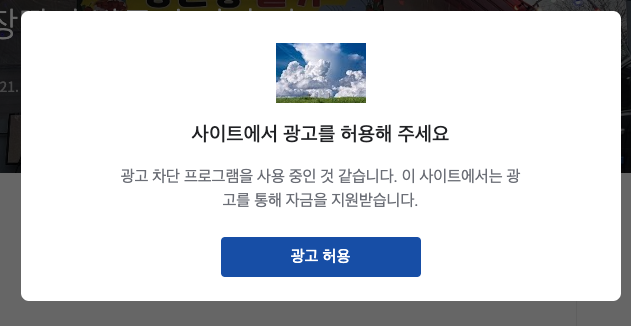 우선 해당 사이트 tistory.com을 애드블럭을 해제합니다.